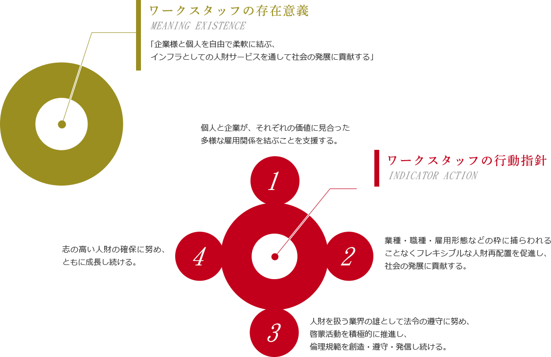 - 業種・職種・雇用形態などの枠に捕らわれることなくフレキシブルな人材再配置を促進し、社会の発展に貢献する。